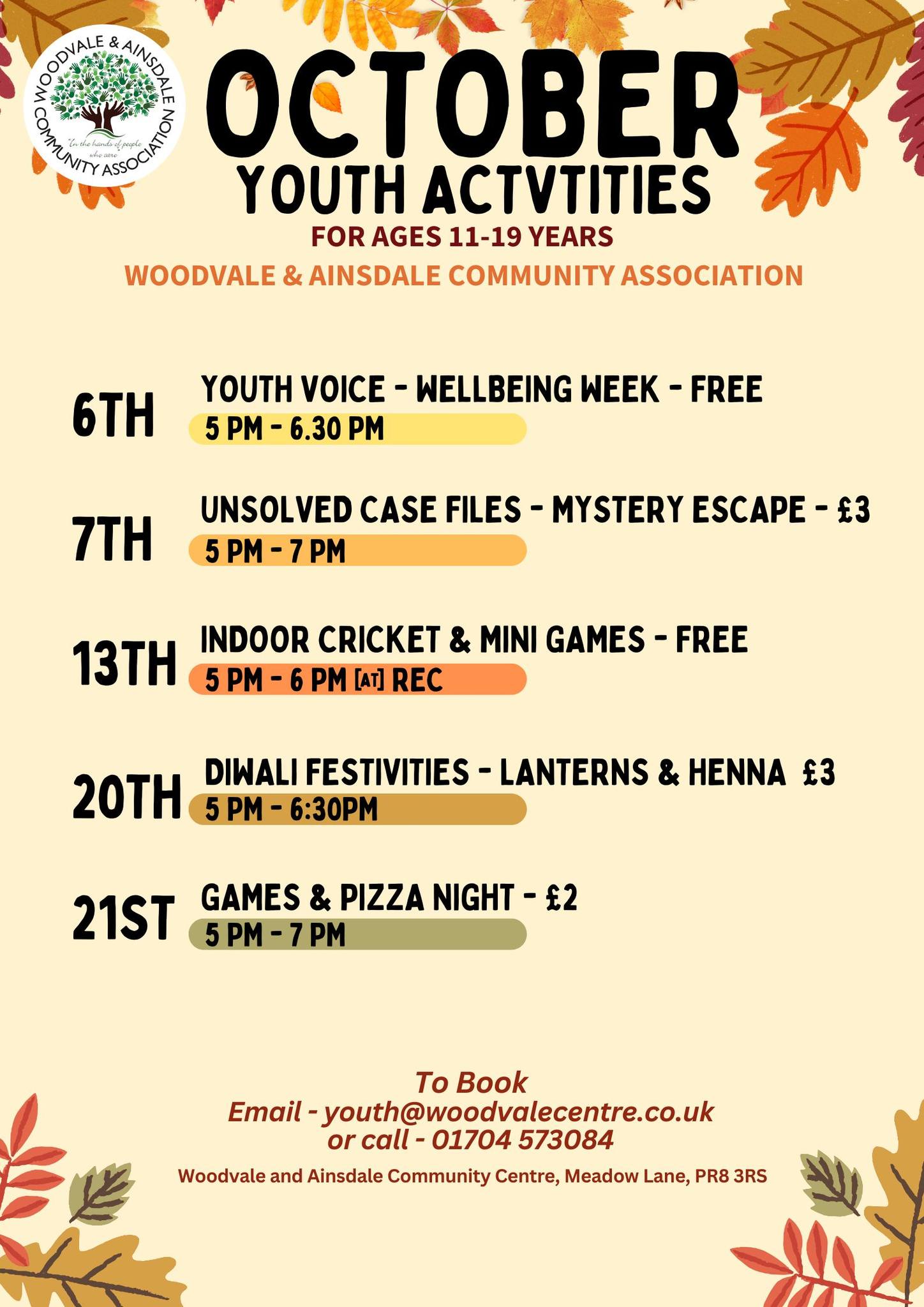 Here is the flyer for October, for more information please call us or check out our Facebook page.